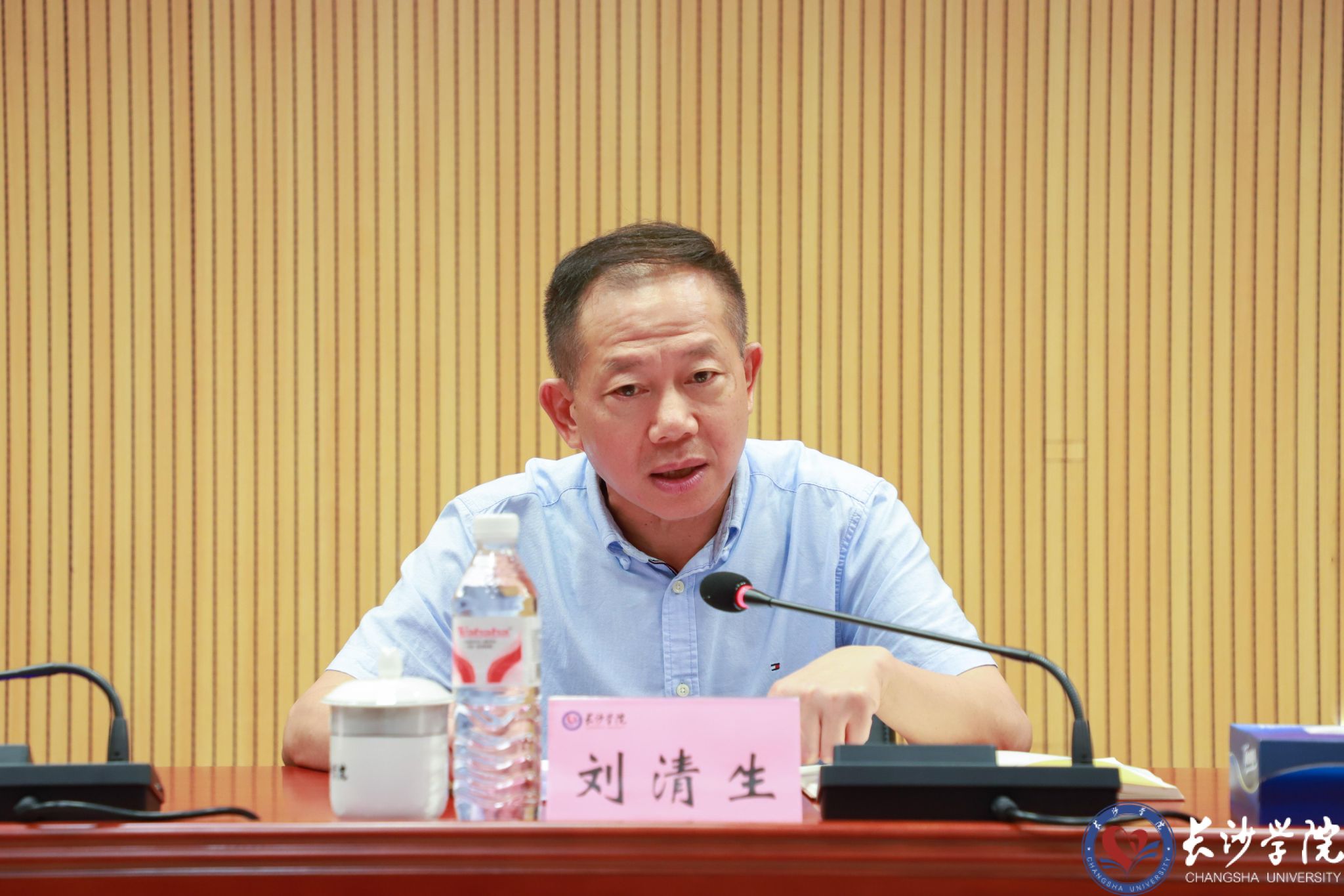 根据省委关于巡视工作的统一部署,2025年9月15日下午,省委第五巡视组巡视长沙学院党委工作动员会召开。会前,省委第五巡视组组长刘清生主持召开与长沙学院党委书记杨小云的见面沟通会,通报了巡视工作有关安排。会上,刘清生就即将开展的巡视工作作了动员讲话。杨小云主持会议并作表态讲话。