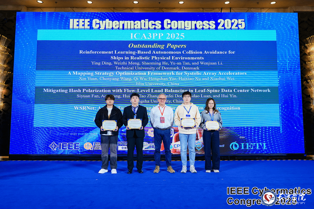 近日,在河南郑州举办的2025年IEEE国际人机物智能大会上,我校计算机科学与工程学院23级本科生樊思远团队凭借创新研究成果斩获殊荣,其牵头完成的论文《Mitigating Hash Polarization with Flow-Level Load Balancing in Leaf-Spine Data Center Network》从全球600余篇投稿中突围,获评大会仅设4项的优秀论文奖(Outstanding Paper Award)。这是学院本科生学术论文首次摘得此类国际奖项,标志着学院人才培养与科研创新能力获国际学术组织高度认可。
