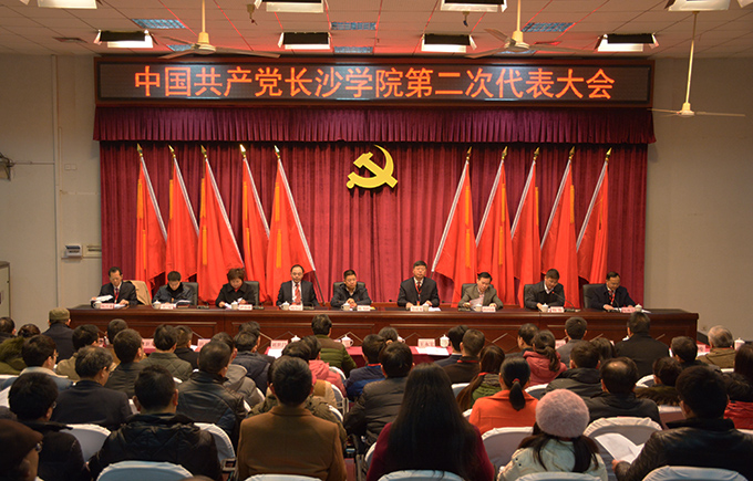 韦成龙同志代表中国共产党长沙学院第一届委员会向大会作党委工作报告
