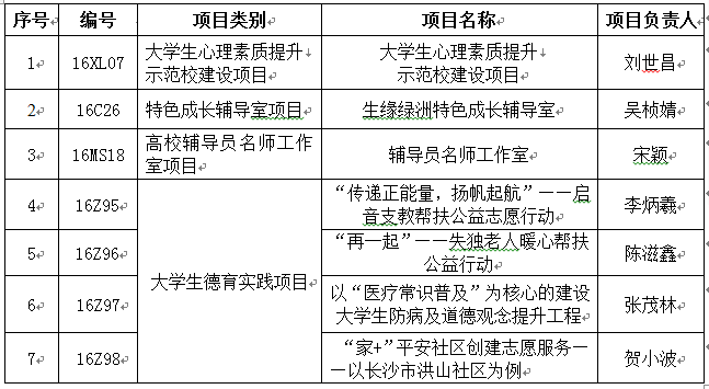 附:我校2016年度湖南省大学生思想道德素质提升工程项目立项名单