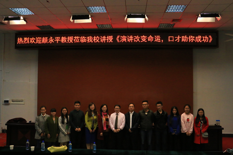 10月29日,由我校教务处主办,演讲与口才励志协会承办的《演讲改变命运,口才助你成功》讲座在致远楼学术报告厅举行。讲座由当代著名演讲家、世界华人演讲家同盟副主席、中国演讲协会常务副会长颜永平教授主讲,副院长屈林岩主持。