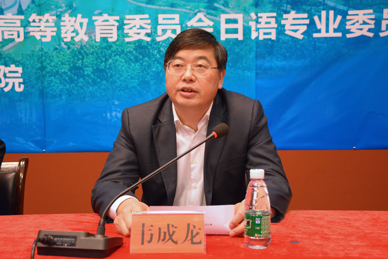 党委书记韦成龙代表学校致欢迎词,他对参加大赛的来宾和同学表示热烈的欢迎,对参赛选手送出了衷心的祝福,并简单介绍了我校日语专业办学情况。随后,省教育厅副厅长葛建中发表讲话,他表示我省高度重视大学生学科竞赛工作,大学生日语演讲比赛为全省高校日语专业教学工作提供给了学习交流的平台,为同学们展示学习成果提供了开放的舞台,大大激发了同学们的学习热情,为持续推进我省高校日语教学改革奠定了良好的基础。