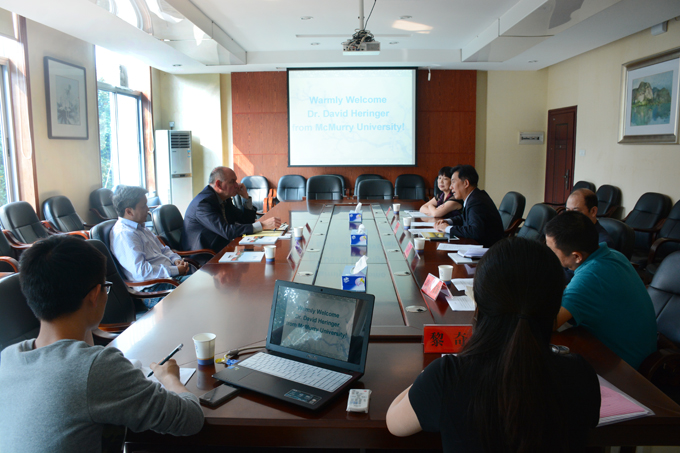 副校长刘世昌首先对McMurry大学David Heringer副校长的来访表示热烈欢迎,并简要介绍了我校的基本情况。David Heringer先生致答谢词并介绍了美国McMurry大学的基本情况。随后,双方对合作内容进行了交流,对联合培养人才,语言学院合作以及师生交流方面展开了讨论。David Heringer先生表示将对长沙学院赴美国McMurry大学交流学生提供奖学金。