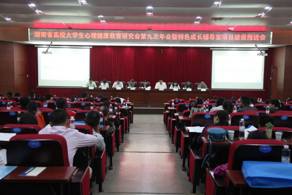 会上,研究会会长、长沙理工大学副校长谈传生作了研究会2014-2015年度工作报告,号召各会员单位群策群力,共同履职,稳步推进大学生心理健康教育研究会工作。省委教育工委宣传部曾力勤部长总结了第一批省级特色成长辅导室建设情况。他高度评价了高校特色成长辅导室建设成果,要求在今后的建设中厘清思路、拓展思维、广扩资源,解决好四个问题。一是研读文件,吃透精神,解决"为什么"的问题;二是科学定位,明晰功能,解决"是什么"的问题;三是有的放矢,务求实效,解决"怎么建"的问题;四是追求特色,注重方法,解决"要什么"的问题。