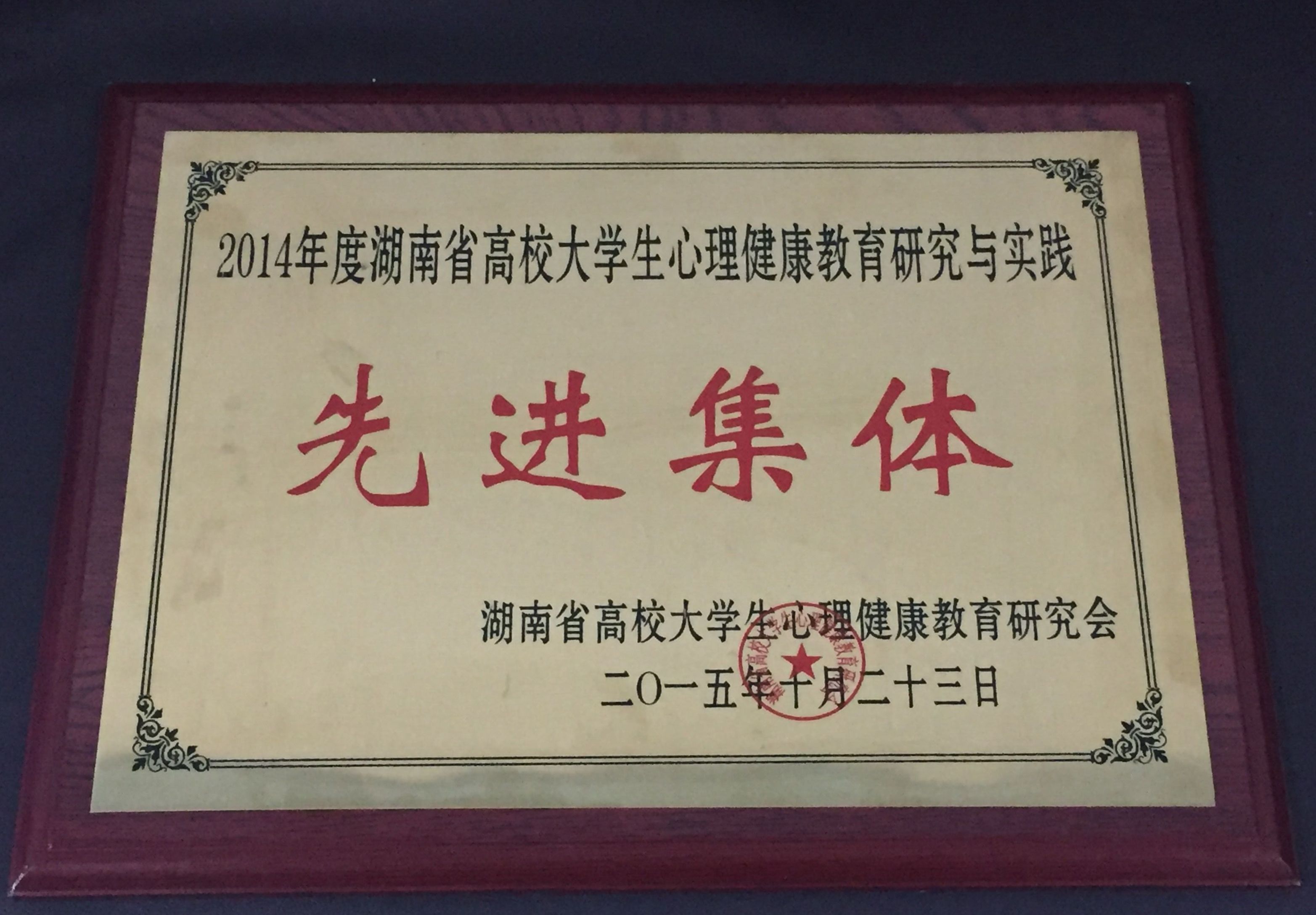 10月23日,我校学工部副部(处)长姜巧玲带领心理中心老师参加了在长沙理工大学召开的湖南省高校大学生心理健康教育研究会第九次年会暨特色成长辅导室项目建设推进会。湖南省教育厅党组成员、教育工委委员陈飞跃出席会议并讲话。我校心理健康教育中心再次荣获湖南省高校大学生心理健康教育研究会"先进集体"称号,受到省教育厅表彰。