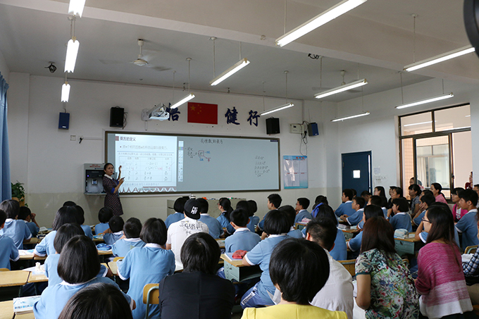 观摩课由附中初中数学组陈嘉妮和陈俊两位青年教师主讲。陈嘉妮老师利用智能无尘教学系统讲了《有理数的乘方》,陈俊老师利用101网校网络教学平台讲了《三角形的外角》,向前来观摩的教师展示了我校附中利用信息技术、整合教学资源、提升教学水平、打造信息化课堂的探索与实践。