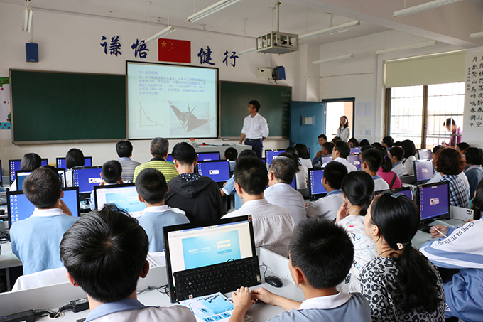 据悉,此次观摩课是我校附中作为全市初中数学教学基地校承担的展示课任务,也是长沙市中小学老师信息技术提升工程中研修培训的一个重要环节。根据教育部颁布的《中小学老师信息技术应用能力标准(试行)》和《中小学老师信息技术应用能力培训课程标准(试行)》文件,要求中小学老师要应用信息技术优化课堂教学、转变教学方式和支持教师专业发展,为此,长沙市教育局举办了全市中小学老师信息技术应用能力提升工程专项培训。培训以基地校观摩教学、专家政策解读、小组研究探讨、教学实践操作和学习总结评价等方式进行,以解决教师在教学中遇到的普遍性、实用性、关键性问题,从而实现减轻学生学习和教师教学负担,最终实现提高教学质量的目标。