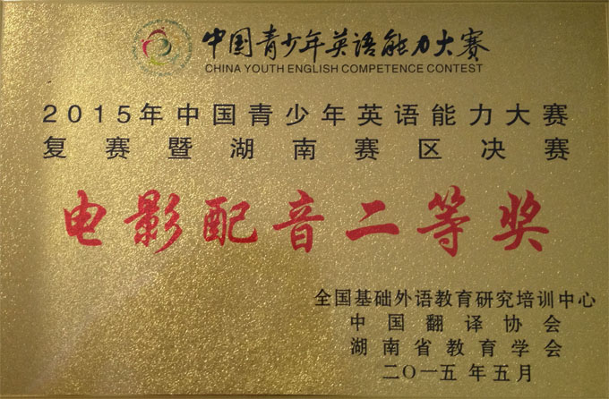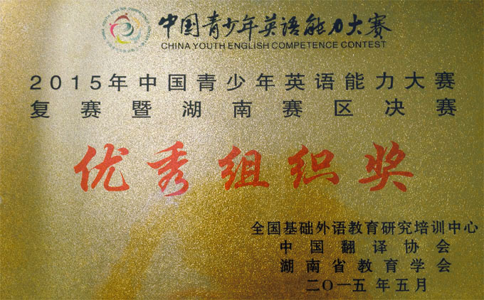 2015年中国青少年英语能力大赛复赛暨湖南省决赛于5月23日至24日在长沙国防教育训练基地拉开帷幕。全省28所中学参加了此次比赛,其中有不少以英语教学为特色的外国语学校。参赛选手一千余名。附中派出了由初一、初二年级共10名学子组成参赛团队,在初中英语组老师的精心指导下,电影配音团体项目通过与65支队伍的激烈竞争,获得1个二等奖,1个三等奖的好成绩。个人项目在快速拼词、口语表达及个人全能都有所斩获,附中也在此次大赛中荣获优秀组织奖。
