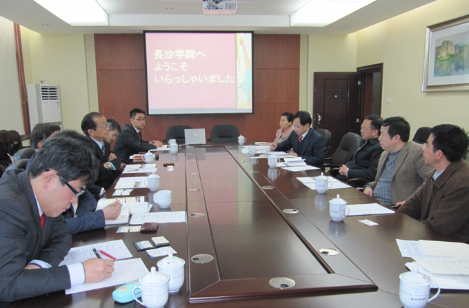 2012年3月15日,福冈国际学院、日本テクノスマイル株式会社(日本techno-smile株式会社)一行7人再访我校。长沙学院副院长屈林岩、招生与就业指导处处长李学勇、机电工程系主任庞佑霞、计算机科学与技术系主任刘华富、旅游管理系主任李映辉和国际合作与交流处工作人员在院办公楼二会议室热情接待了日方代表团,双方就我校学生赴日实习和就业等相关事宜进行了愉快交谈。