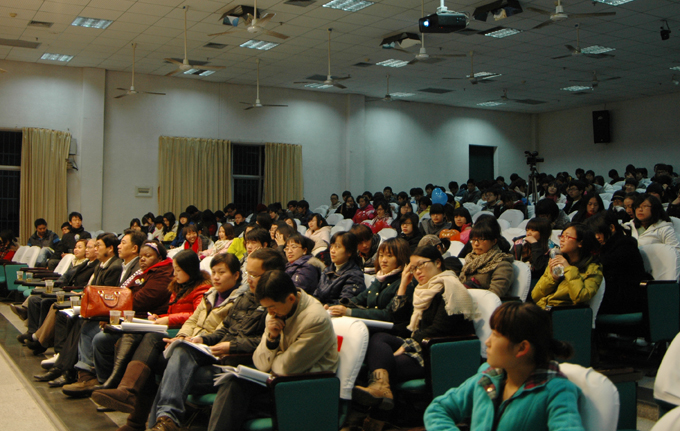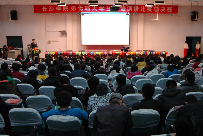 比赛在副院长刘世昌的致辞下开幕。 他用一段流利的英文表示对选手们进入决赛的祝贺和比赛前的祝福,并结合自身在美国四年的生活经历告诫同学们要学好英语。经过前几轮的层层筛选, 共24名"幸运儿"参加总决赛,其中大一组10名,大二组14名。此次比赛分为两个环节--三分钟限时演讲和2分钟即兴演讲。"爱莲,爱莲,勇往直前。"比赛还未开始,台下便是一片热闹沸腾之声,粉丝团们都为自己支持的选手奋力呐喊。比赛首先进行的是大一组,当轮到四号选手蔡任时,全场一片欢呼声。在演讲过程中,蔡任同学凭着清晰流利的英语口语以及大量的人物实例说明"'To be a leader ,not a follower'这一想法改变了这个世界",而在主持人提问有关"your view of low carbon life "时,蔡任同学层层深入说明其重要性和在生活中做到低碳的方法,这一生动演讲赢得了全场观众的掌声,也成功荣获本次比赛最高分--9.085 。在观众的热情洋溢声中,比赛进入大二组,在比赛过程中,17号选手张璇同学凭着纯正流畅的英语口语、激情活力的演讲赢得了全场热烈的欢呼声。