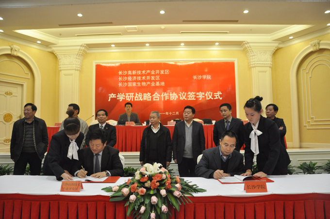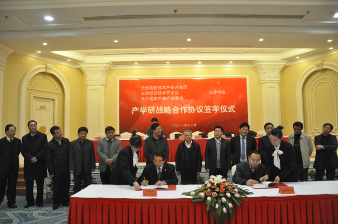 12月21日上午,我校与长沙高新技术开发区、经济技术开发区、国家生物产业基地在明城国际大酒店签订了全面战略合作协议。院长刘耘代表学校与三大园区负责人签订了全面战略合作协议。协议的签署标志着我校的产学研工作迈上了一个新的台阶。