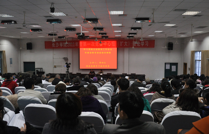4月8日下午,我校2011年度第一次中心组(扩大)理论学习在致远楼学术报告厅举行。湖南省教育厅副巡视员廖湘生应邀就学习贯彻全省教育工作会议和建设教育强省规划纲要为我校师生作专题报告。校领导黄中瑞、刘耘、李云龙、屈林岩、郭清泉、雍正海、王永宏,全体中层干部、党支部书记、思想政治理论课教师、政治辅导员和部分学生党员干部参加了学习会。会议由李云龙主持。