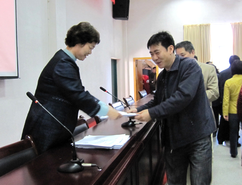 系部处室主要负责人向党委书记李咏芳递交党风廉政建设责任书