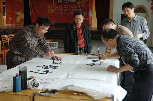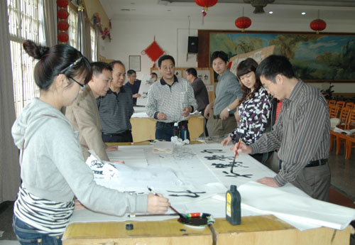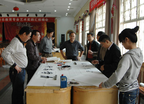 10月29日上午,校工会在师生活动中心举办了教职工"我写新校训"软笔书法比赛活动,共收到教职工初赛作品230余幅,其中,信科系、艺术系等分工会组织每位教师都书写了校训。通过评委的认真评审,有30位作者的作品入围。比赛现场,选手们或浓墨重楷,或飘逸湍飞;观众们品文论字、笑语盎然。此次比赛得到了全体校领导的关注和重视,其中钟惠英、郭清泉等校领导亲自挥毫并现场指导观摩。经评委们的认真评定,余文龙、朱洁华获一等奖,王作堂、黎成勇等同志分获二、三等奖。