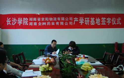10月27日上午,院长刘耘在办公楼三会议室与湖南省京阳物流有限公司和湖南省全州药业有限公司的负责人签订了产学研基地合作协议书,标志着我校产学研基地又添两个"新成员"。院长刘耘、副院长屈林岩、工商管理系主任邹安全参加了签字仪式。