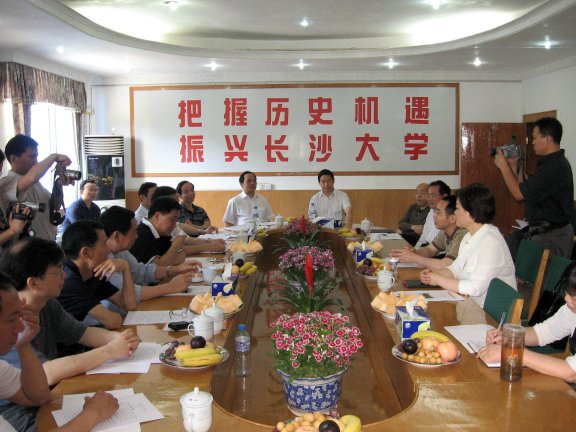 李咏芳书记首先代表学校党政向市政协领导的到来表示欢迎和感谢,并介绍了我校领导班子成员和学校各民主党派建设的情况,对各民主党派同志在学校发展和建设进程中所起到的作用给予了充分肯定。随后,刘耘院长向各位领导汇报了我校近年来在校园基础建设、教学科研、招生就业等方面取得的主要成绩,当前学校发展所面临的新形势和学校办学条件存在的主要差距,以及今后学校发展的基本构想和为迎接本科评估验收将采取的措施。他表示,过去在市委、市人大、市政府、市政协的高度重视和大力支持下,长大的建设发展取得了显著的成绩,成功升格为长沙市唯一一所市属本科学校,并请市各级领导和部门一如既往关注和支持长大,帮助长大顺利通过2009年左右的合格本科评估验收,争取早日恢复“长沙大学”校名。