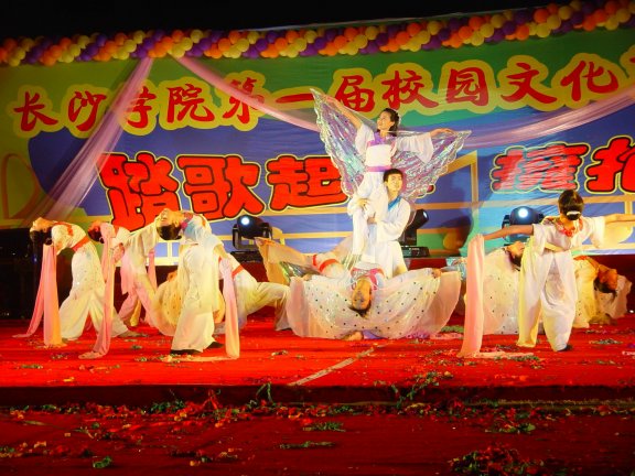 5月18日晚,初夏的校园处处洋溢着青春与活力,五彩的气球、绚烂的烟花装点了校园的夜空。在这个美丽的夜晚,长沙学院第一届校园文化艺术节踏着青春的节奏在田径场如期举行。此次开幕式由校团委、学生处和宣传统战部主办。校领导李咏芳、刘耘、李云龙、钟惠英、胡名健、宋达、邓球柏、方逵、刘世昌及各系部、处室负责人、师生代表6000余人欢聚一堂,共同观看了盛况空前的开幕式演出。