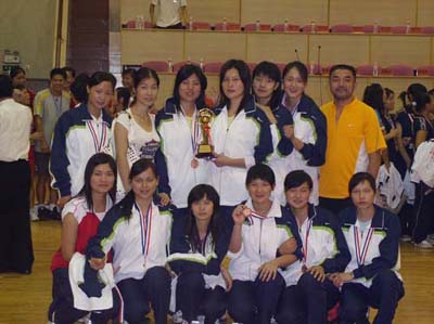 获奖后女子排球队全体成员和教练合影留念