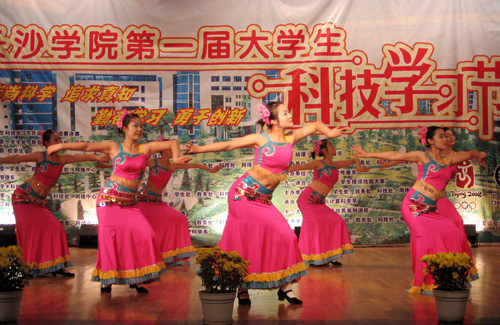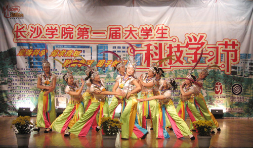穿插在颁奖仪式中的文艺节目把整场晚会推向一个又一个高潮。喜气洋洋的舞蹈《俏妹闹新春》以及具有苗家异域风情的舞蹈《山韵》,使在场观众饱享眼福。作为压轴节目的群口小快板《我们的生活真精彩》用生动幽默的语言描绘了长大的新人新貌新气象,述说了长大学子丰富多彩的校园生活。在和谐愉悦的氛围中,我校第一届大学生科技学习节闭幕式及颁奖晚会圆满结束。