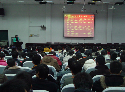 12月23日下午,长沙学院党校第一期预备党员培训班学习交流大会暨结业典礼在科技楼学术报告厅举行。出席本次大会的领导有党委副书记、副院长、党校校长李云龙,各系部党总支书记和部分系部的学生党支部书记,大会由党委组织部长、党校副校长甄洁洪主持。