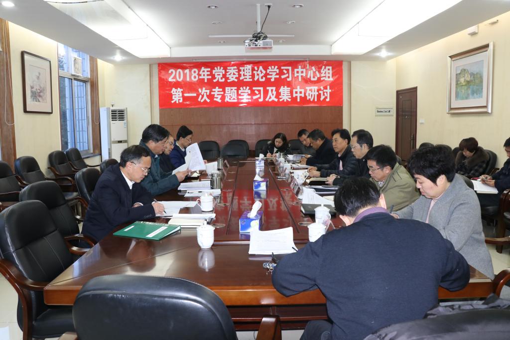 2018年1月19日,我校开展2018年度党委理论学习中心组第一次专题学习及集中研讨,学习研讨习近平总书记“1.5”重要讲话(即在新进中央委员会的委员、候补委员和省部级主要领导干部学习贯彻习近平新时代中国特色社会主义思想和党的十九大精神研讨班开班式上的重要讲话)精神。全体校领导、党委委员,党政办、组织部、宣传部、纪委办、学工部、机关党总支主要负责人参加了此次学习及集中研讨,学习研讨由党委书记韦成龙主持。
