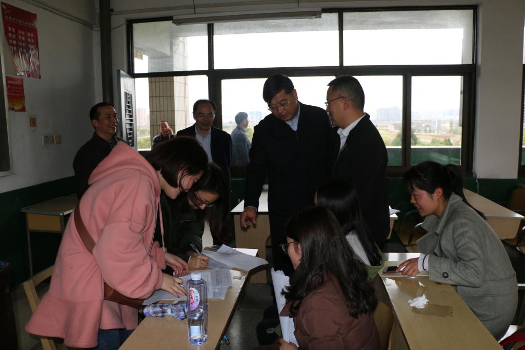 新学期伊始,为全面了解学校开学准备情况,确保各项工作有序开展,2018年3月4日下午,党委书记韦成龙,党委副书记、校长杨小云,副校长周明侠、张世英带队对各教学单位、学生宿舍、食堂等进行了认真、细致的走访检查。