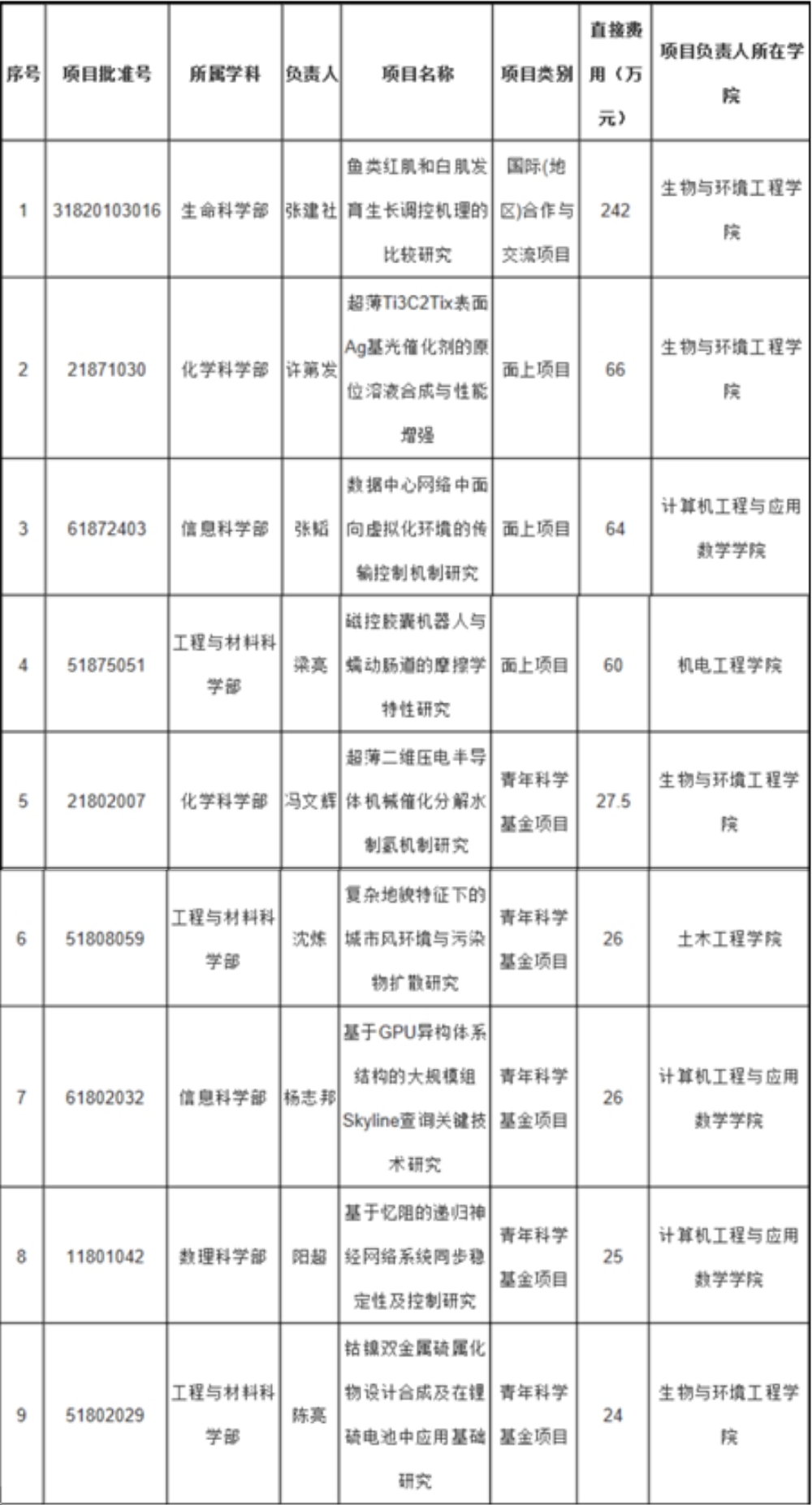 (我校2018年度获得国家自然科学基金立项资助情况一览表)