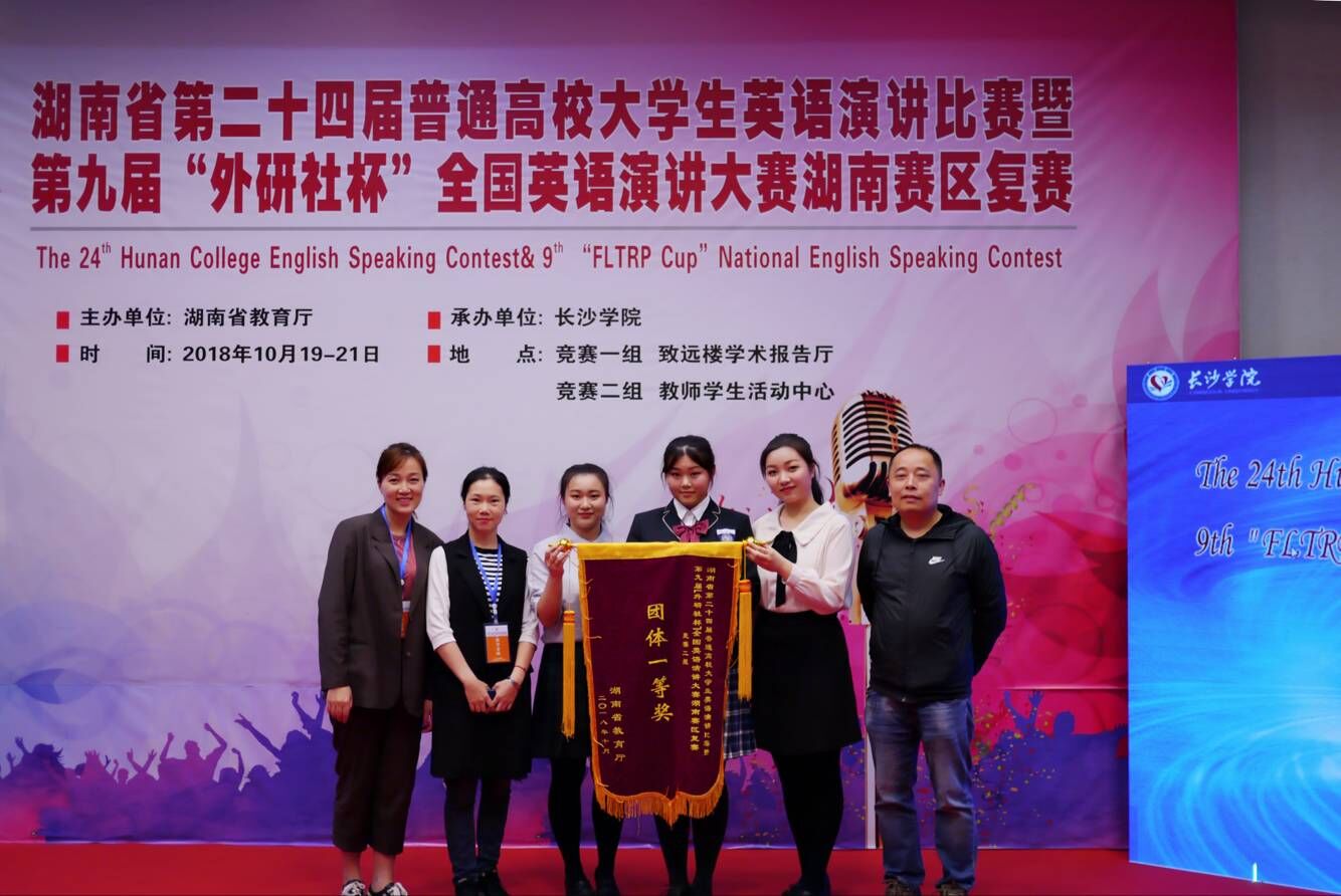 湖南省普通高校大学生英语演讲比赛自1995年起,至今已连续举办24届。在历次比赛中,我校选手屡获佳绩,曾多次赢得个人、团体奖项,今年我校代表队斩获四项一等奖,创造了历史最佳战绩。多年来,公共外语教学部秉持“以教助赛、以赛促教”的理念推进教学改革,在涂靖主任带领下,全体教师凝心聚力,提升英语教学水平、提高学生英语应用能力,为良好成绩的取得提供了长期而坚实的保障。