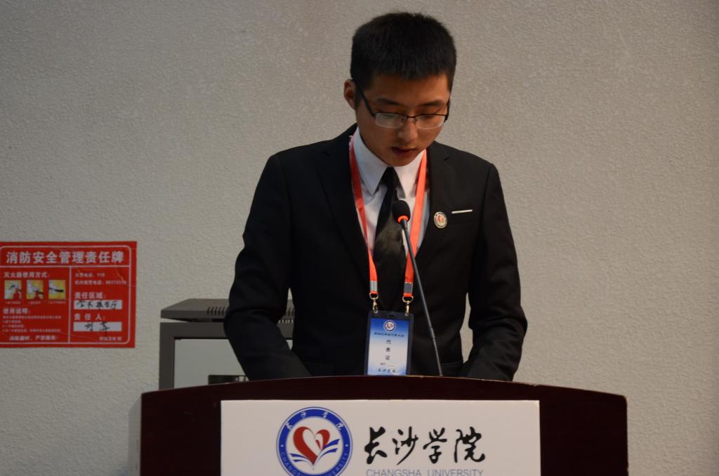 长沙学院学生会主席提名人选储梦秋代表长沙学院第三届学生委员会作了题为《青春建功新时代,勇担使命筑梦想——为建设特色鲜明的应用型地方大学贡献青春和力量》的报告,对长沙学院第三次学代会以来的工作进行了总结。他在肯定已取得的成就的同时,也分析了面临的形势与不足,并强调全校各级学生组织必须下定决心,采取有效措施加以解决。随后,他报告了今后两年的重点工作,提出坚持先进理论武装头脑、坚持营造良好的校园文化氛围、坚持创新服务模式、坚持加强自身建设、坚持加强传承与创新的“五个坚持”工作思路。