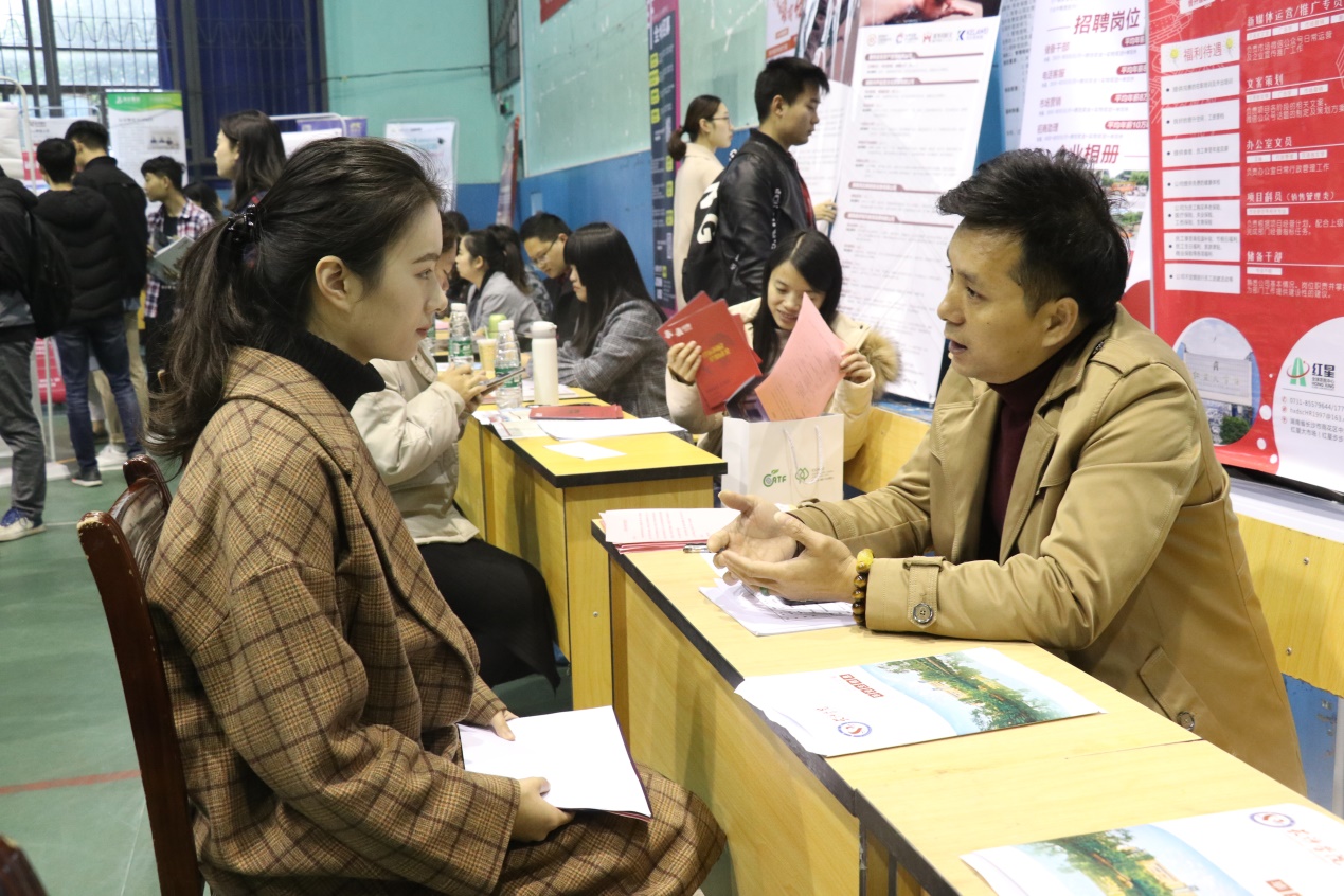 现场气氛热烈,不断有毕业生向心仪的企业咨询。“对于选择公司来说我比较看重专业、地域以及公司的发展前景。当然在校期间学好专业知识,平时做一些兼职积累工作经验,考一些有用的证书增加底气,这些都很有必要。而面试时的自信也必不可少。”来自2015级外国语学院的彭建英同学告诉记者。