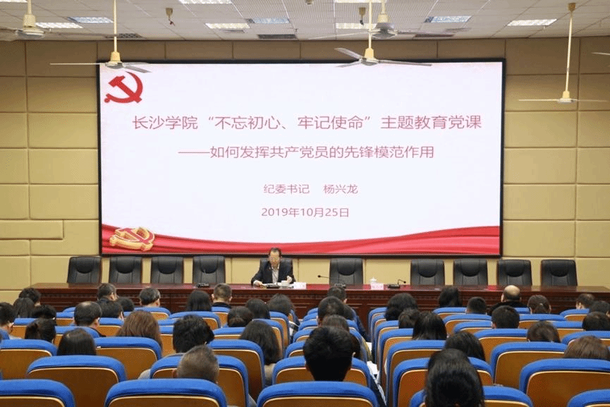 根据学校“不忘初心、牢记使命”主题教育部署安排,10月25日下午,学校纪委书记杨兴龙以“如何发挥共产党员的先锋模范作用”为题,在致远楼学术报告厅为经济与管理学院、长大附中、机关教职工三支部100多名教职工党员讲授了专题党课。