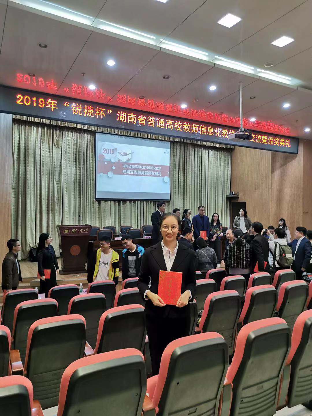 日前,在湖南省教育厅举办的2019年“锐捷杯”湖南省普通高校教师信息化教学竞赛中,我校教师获得信息化教学竞赛一等奖和二等奖各一项。