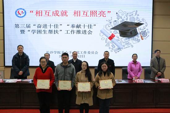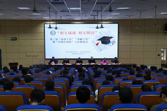 “浏河水,水泱泱,萦绕我巍巍大学堂。”会场响起雄壮激昂的校歌。12月12日,我校在致远楼学术报告厅召开以“相互照亮、相互成就”为主题的第三届“奋进十佳”“奉献十佳”表彰暨“学困生帮扶”推进会。校党委副书记、关工委主任屈林岩出席会议,学工部、教务处、离退休办、关工委、团委等职能部门负责人,“五老”成员、各二级学院关工委主任及联络员,受表彰的学生及各二级学院第四届“学困生”帮扶活动结对库代表等300余名师生参加会议。会议由屈林岩主持。