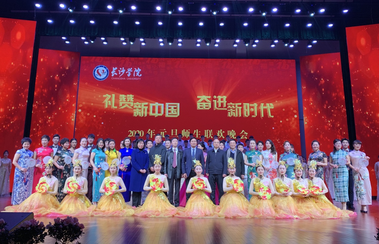12月30日晚,由党委宣传部、工会、共青团长沙学院委员会主办的“礼赞新中国,奋进新时代”2020年元旦师生联欢会在大礼堂举行。党委书记刘沛林,党委副书记屈林岩,副校长王永宏,党委委员、副校长周明侠,党委原书记韦成龙,党委委员甄洁洪等800余名师生共赏晚会。