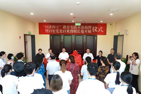 7月6日上午,我校关工委与中国共产党长沙历史馆共建“四讲四立”教育实践基地揭牌及“百年党史百米剪纸长卷”开展仪式在中国共产党长沙历史馆举行。中共长沙市委党史研究室主任李卫政、中共长沙市委党史研究室副主任李敏、中国共产党长沙历史馆馆长唐德强、中国共产党长沙市长沙历史馆党支部书记郑辉雄、中国共产党长沙历史馆副馆长罗业永、长沙学院党委副书记、校关工委主任汤文胜、长沙学院关工委常务副主任杨兴龙以及长沙学院宣传部、关工委和艺术设计学院部门领导及老师学生代表出席本次活动。
