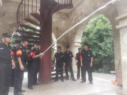 7月9日下午,保卫处组织学校义务消防队在东来阁附近林区开展灭火实战演练。