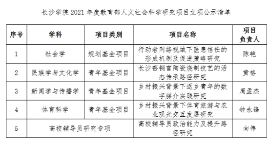 8月3日,教育部社科司公示了2021年度教育部人文社会科学研究一般项目评审结果。我校共获批5项,其中包括规划基金项目1项,青年基金项目3项,高校辅导员研究专项任务项目1项(具体名单见附表)。根据青塔统计显示,我校立项数在全省高校排名第四。