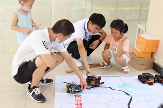 电信学院志愿者向新生展示智能小车