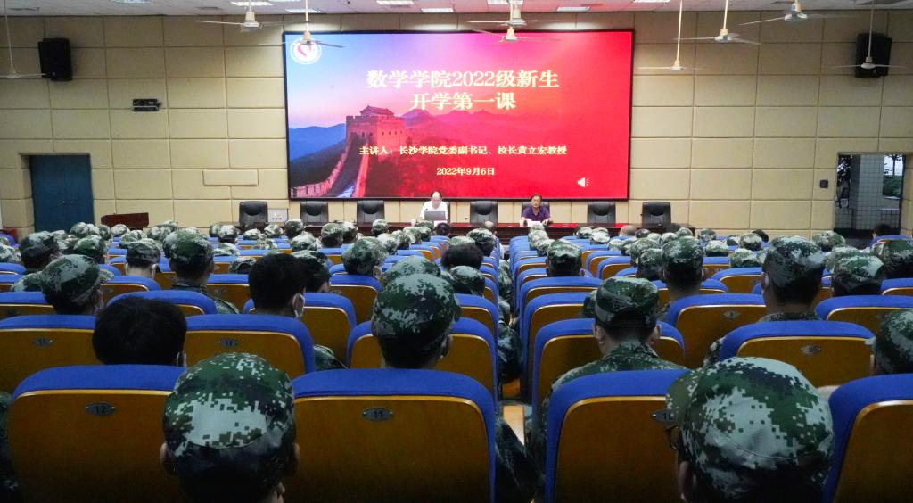 9月6日晚,长沙学院党委副书记、校长黄立宏教授为数学学院2022级全体新生讲授开学第一课,数学学院班子成员、教师代表、辅导员、新生班导到场听课,院长彭向阳教授主持。