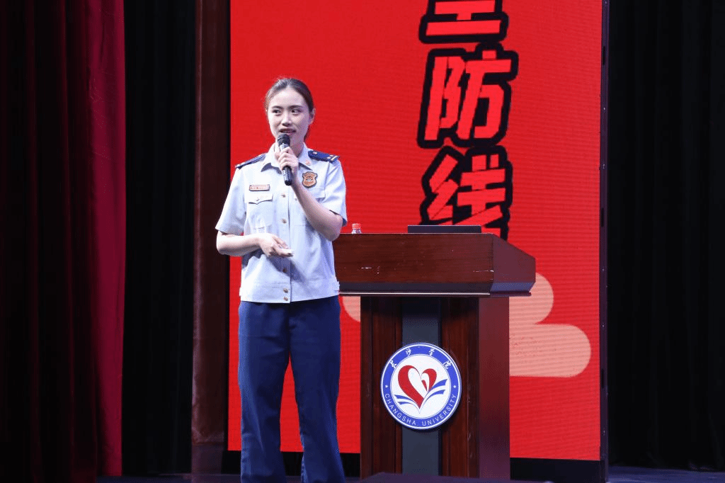 湖南省消防救援总队宣讲员蒋悦通过讲解周边发生的火灾事故、近年来校园火灾的真实案例,提醒师生们一定要消除麻痹大意的思想,从自身做起,关注消防,火灾发生以后要及时报警并安全疏散,同时也要掌握扑救初期火灾的能力。