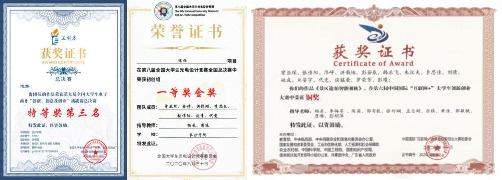 杨丞的部分获奖证书