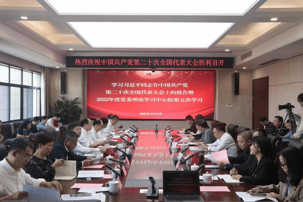 10月16日上午,举国期盼、举世瞩目的中国共产党第二十次全国代表大会在北京人民大会堂隆重举行,习近平总书记代表第十九届中央委员会向大会作报告,我校组织师生集中收看。下午,学校党委理论学习中心组(扩大)立即开展2022年第五次集中学习,专题学习讨论党的二十大报告。师生共话学习体会,以上率下在全校迅速掀起学习宣传贯彻热潮。全体校领导、党委委员,学校机关处室主要负责人,师生代表参加会议。会议由党委副书记汤文胜主持。