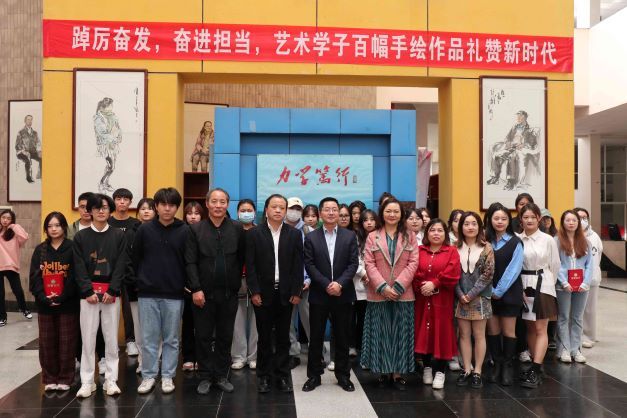 11月1日中午,一场以“踔厉奋发,奋进担当,长大学子百幅作品礼赞新时代”为主题的原创艺术作品展在长沙学院艺术设计学院丹青楼一楼大厅举行。长沙学院党委学生工作部部长徐远超、艺术设计学院党总支书记舒欣、院长胡友慧、党总支副书记黄慧瑾和师生代表出席了本次作品展,并为获奖学生颁奖。