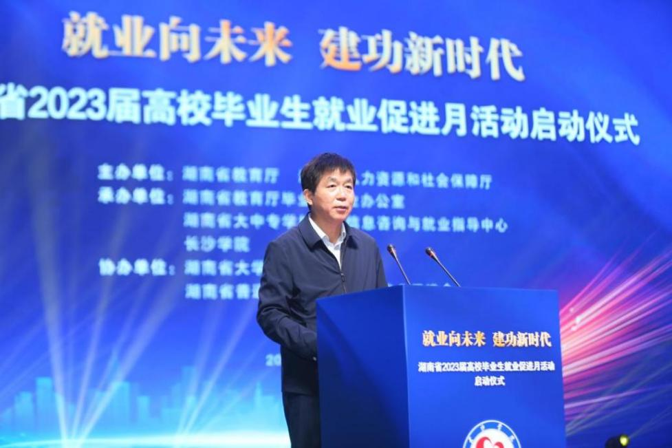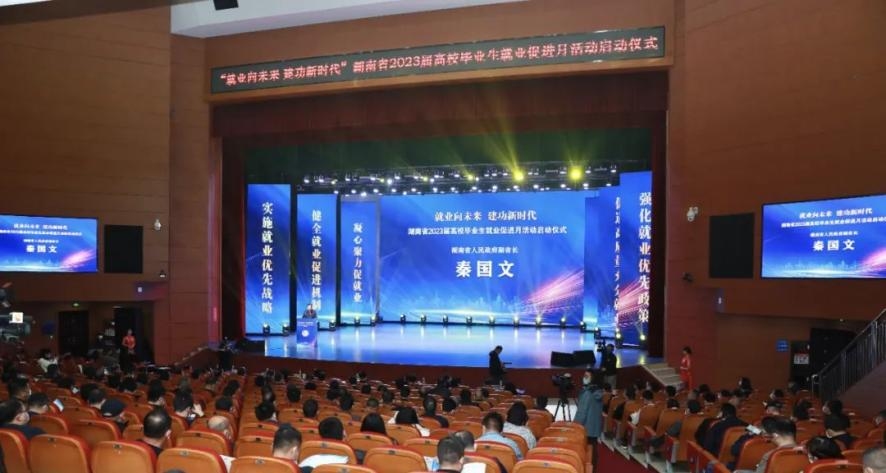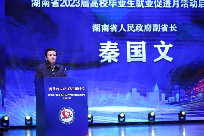 仪式最后,秦国文宣布湖南省2023届高校毕业生就业促进月活动正式启动,正式拉开了2023届高校毕业生就业大幕。