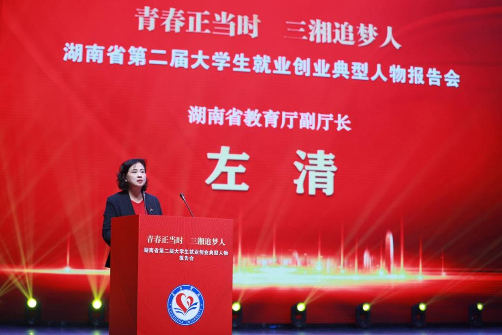 省教育厅党组成员、副厅长左清在第二届湖南省“青春正当时,三湘追梦人”大学生就业创业典型人物报告会上讲话