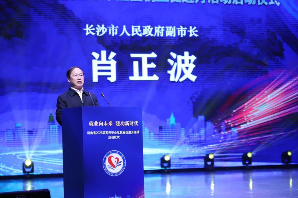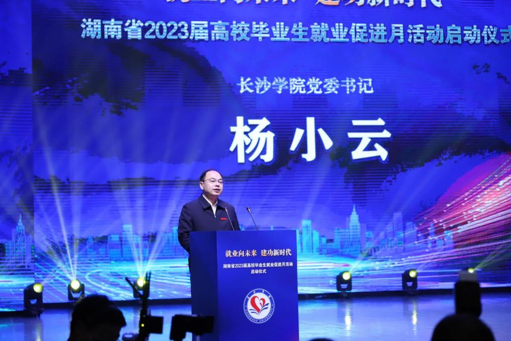 11月22日上午,湖南省2023届高校毕业生就业促进月活动启动仪式在我校举行。省人民政府副省长秦国文,省教育厅厅长夏智伦,省人力资源和社会保障厅副厅长廖跃贵,长沙市政府副市长肖正波,省教育厅副厅长左清,我校党委书记杨小云,党委副书记、校长黄立宏等领导出席启动仪式。省人民政府副秘书长彭翔主持启动仪式。