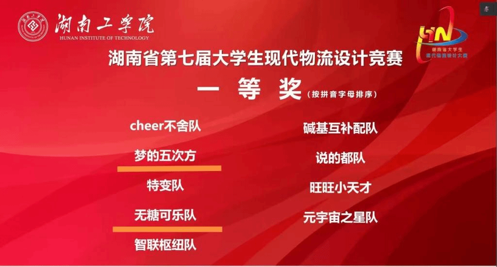 湖南省第七届大学生现代物流设计竞赛自启动以来,我校积极组织校内选拔赛,最终汤毅、戴恩勇老师指导的“无糖可乐队”、叶欣、全春光老师指导的“梦的五次方队”和杨威、余冰老师指导的“小虎冲冲队”三支队伍突出重围,代表学校参赛。经过初赛、复赛和决赛三个阶段,我校三支参赛队伍一路过关斩将,最终获得优异成绩。