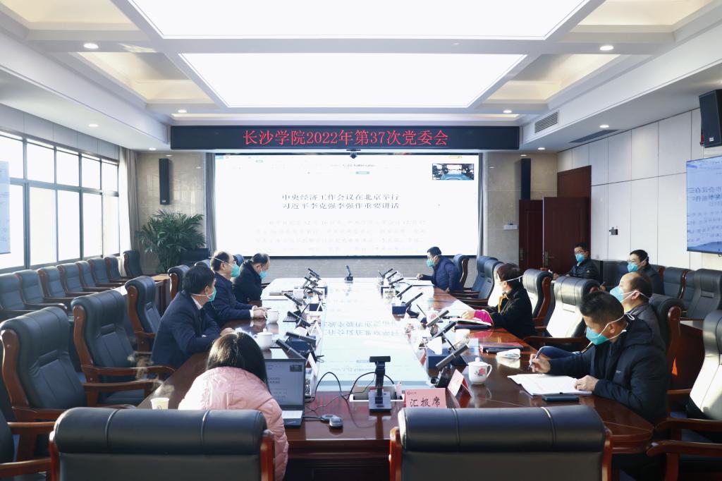 12月23日上午,我校召开2022年第37次党委会,学习传达习近平总书记在中央经济工作会议上的重要讲话精神和湖南省委经济工作会议精神。全体党委委员、校领导参加学习,相关职能部门负责人列席会议。党委副书记汤文胜领学并作主题发言。党委书记杨小云主持会议并作总结讲话。