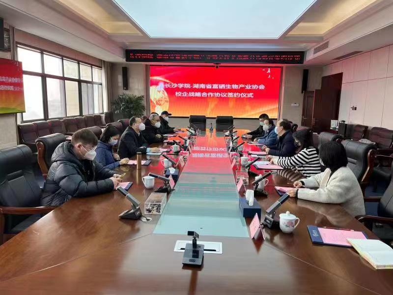 为进一步加强产教融合、校企合作,1月5日上午,我校与湖南省富硒生物产业协会签署战略合作协议在长盛楼4001会议室顺利举行。湖南省富硒生物产业协会会长杨俊、资深专家顾问郭清泉、秘书长彭艳等一行6人参加签约仪式。学校党委委员、副校长曾广胜,生物与化学工程学院主要负责人以及相关教师参加了签约仪式。签约仪式由曾广胜主持。