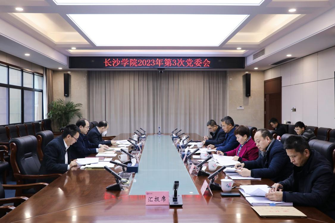 2月8日上午,我校召开2023年第3次党委会,传达学习习近平总书记近期重要讲话精神;传达学习湖南省第十二届纪委三次全会、长沙市第十四届纪委三次全会等会议精神;传达学习2023年全省教育工作会议精神;传达学习2023年长沙市党建工作会议精神。校党委全体成员参加学习,相关职能部门负责人列席会议。会议由党委书记杨小云主持。